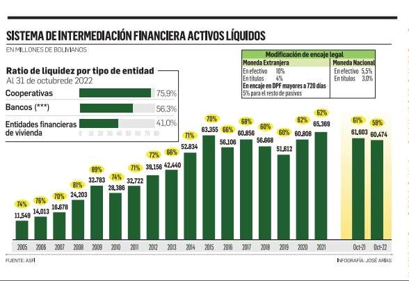 Es decir, que por cada $us 100, unos $us 4 se destinarán a encaje legal (reserva), cuando antes se destinaban $us 10.